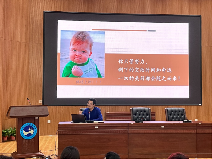 刘玉江向成功考取研究生的同学表示热烈祝贺,对无私奉献于考研辅导工作的老师们表示感谢。他从学院的基本情况和研究生的发展情形,鼓励同学们积极考研,结合高等教育的发展历程、一些学子的自身经历和指导学生的案例,提醒同学们要积极考研,不断提升自我价值。刘玉江告诉同学们一定要坚持学习,希望同学们不要给自己的人生留下遗憾,顺应时代发展需求,积极认真备考,在研究生招生考试中取得佳绩。