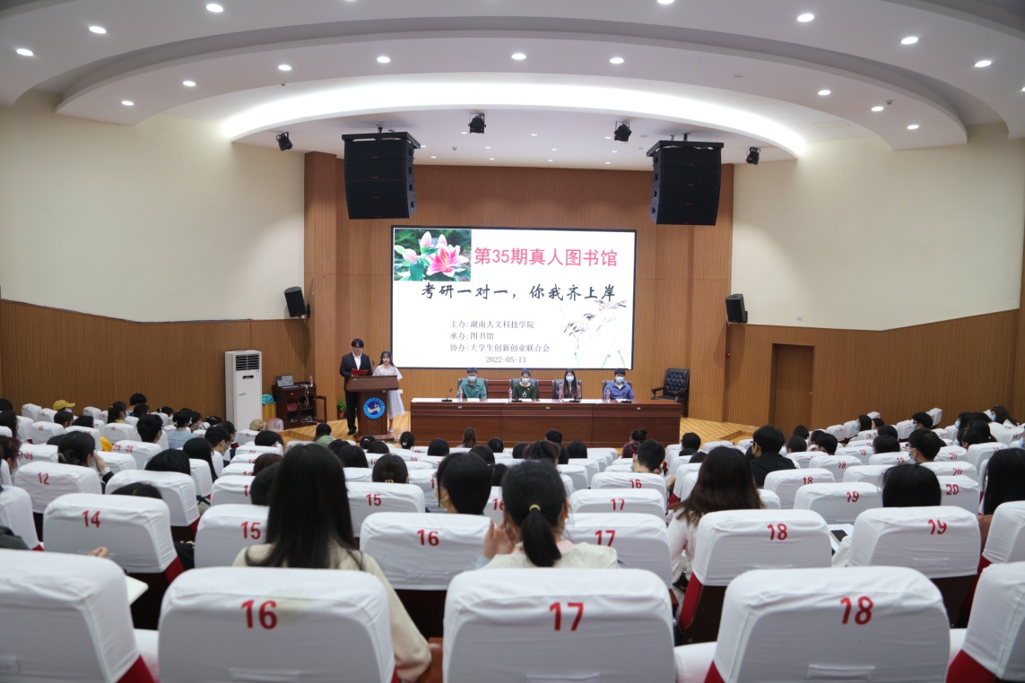 5月13日晚,由44118太阳成城集团主办、图书馆承办,大学生创新创业联合会协办的第35期真人图书馆活动在匠成楼报告厅隆重举行。本期活动以“考研一对一,你我齐上岸”为主题,来自能源与机电工程学院的罗锃同学、材料与环境工程学院的谢斌同学、法学院的谢灵芝同学、教育学院的赵芊芊同学作为本期活动的四本真人图书,与全校200余名学子一起分享了他们2022年的考研心得与体会。图书馆党支部书记、馆长彭辉,副馆长申彦舒,读者服务部主任刘时容参加了此次活动。
