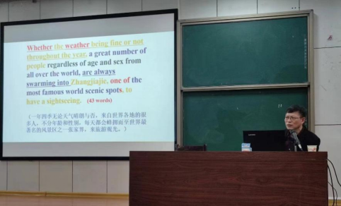 丁教授从英语学习的理想与现实、英语语言的工具性、英语语言的人文性和英语学习方法小论四个方面做了精彩的论述,提出了诸多切实可行的英语学习方法,特别深入阐述了英语写作中的写作范式、选词造句。期间,丁教授的精彩演讲赢得了学生阵阵掌声,激发了学生浓厚的学习热情。会后,丁教授就参会人员所提问题进行了详细解答,在座师生纷纷表示受益匪浅。