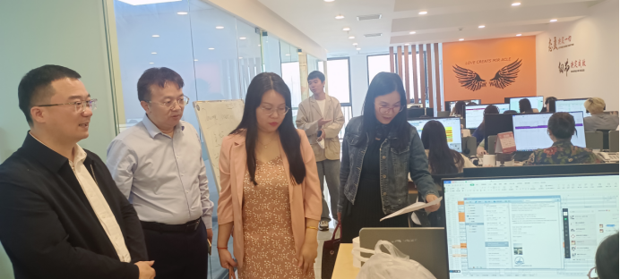 5月25日上午,胡瑾一行来到湖南维帆教育文化传播有限公司与总经理陈芳芳进行交流。陈芳芳就公司重点推进的“专注力培训”及“七角鹿”线上APP学习平台做了详细讲解,并提出英语类学生在新形势下如何进一步发挥专长、打开视野。胡瑾表示,高校英语及商务英语专业人才培养就业要及时对接新发展格局,结合最新的素质教育、线上教育及抖音等各类新兴事物拓宽思维、转变观念,培养综合高素质人才。