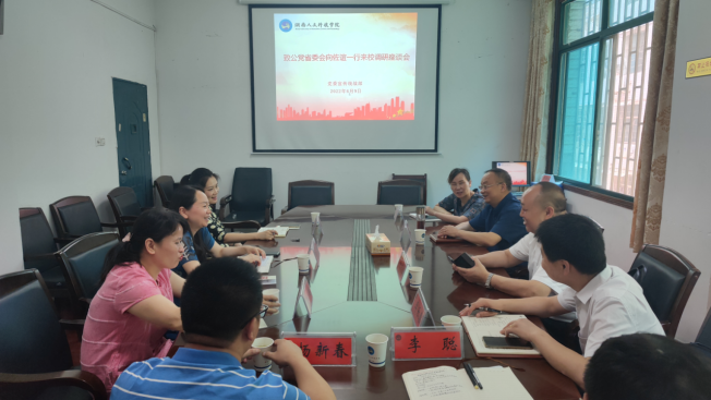 6月9日上午,致公党湖南省委会专职副主委、机关一级巡视员向佐谊一行5人来太阳成官网调研,就致公党党员发展工作进行交流座谈。娄底市委统战部常务副部长、市政府侨务办主任倪正铭等陪同调研,学校宣传统战部常务副部长谢柳、副部长陈璐、统战与普法科科长袁小艳参加调研座谈。