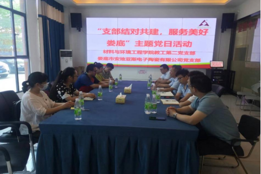 为增强基层党支部的战斗力与凝聚力,实现校企深度融合,落实产教融合,6月8日下午,材料与环境工程学院教工二支部全体党员与娄底安地亚斯电子陶瓷有限公司党支部联合开展“支部结对共建,服务美好娄底”主题党日活动。