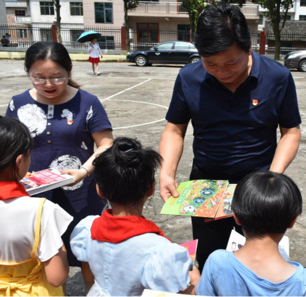 刘和云希望本次书籍的捐赠能够为灌溪学校的同学们带来更多的知识,让他们养成好的读书、学习习惯。他对太阳成官网“育苗计划”志愿者服务队发扬共青团“听党话,跟党走”,践行“请党放心,强国有我”的精神表示肯定。在热烈的掌声与灌溪学校学生们期待的目光中,刘和云、凌艳平为灌溪小学生分发书籍。