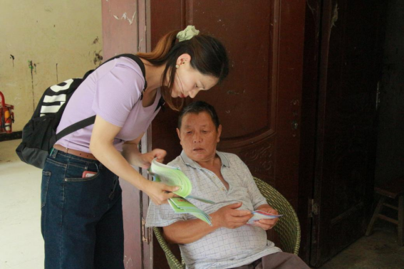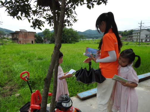 在带队老师欧阳纯晶的带领下,志愿者们走街串巷发放《“八五”普法》《民法典进农村》等普法宣传资料,讲解法律知识。志愿服务队结合文字、图画重点宣讲了民法典的部分案例和条款,为村民提供实际帮助。