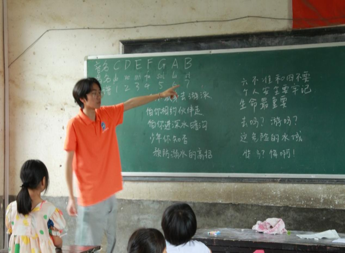 “浔阳地僻无音乐,终岁不闻丝竹声,今日听君歌一曲,如听仙乐耳渐明。”灌溪小学校长说,“像我们这样偏僻的乡村学校,很少上音乐课,有些学校甚至是不上音乐课的,这不是危言耸听,而是很多偏远乡村的现状。”音乐舞蹈学院志愿者们开展红色歌曲的教学,志愿者队员彭文奕、吴韵嘉和易睿阳教孩子们唱红色歌曲《我和我的祖国》。在唱歌前,志愿者们给孩子们介绍《我和我的祖国》的创作背景。在优美的旋律中,志愿者们和孩子们一同歌唱祖国、唱响爱国旋律。孩子们在歌声中感受到那段激情燃烧的峥嵘岁月,以吟唱的方式表达对党和国家的热爱。