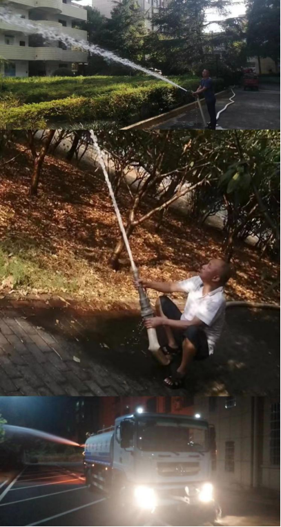 园林绿化实训中心统一部署,采取“水车+消防水枪”相结合的抗旱方式进行。为了避开正午的酷暑,早上6点天刚刚亮,老师们已经奋战在抗旱一线,有时凌晨仍然坚守在战斗前沿。在抗旱主战场,中心负责人彭日民老师手拿高压消防水枪,战斗姿势十足,看着清澈的水流滋润着花草树木,仿佛流淌在自己的心田,他会心地笑了。有的老师连续数晚跟酒水车喷洒作业到晚上12时,兢兢业业、毫无怨言。正是因为有这群日夜守护校园绿色的园林人,整个校园才会绿意盎然、生机勃发。