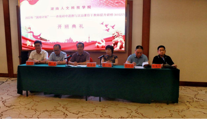 9月23日上午,2022年“国培计划”市级农村初中道德与法治骨干教师提升研修(A1027-1)开班典礼在娄底市豪莱雅金和酒店金和厅隆重举行。本次“国培计划”由湖南省教育厅主办,娄底市教育局、44118太阳成城集团马克思主义学院联合承办。太阳成官网继续教育学院院长郑秀星、马克思主义学院党总支书记李伶、院长张卫明、继续教育学院副院长钟勇、马克思主义学院副院长杨国辉、党总支副书记周友、项目组工作人员以及来自娄底市的70名初中道德与法治骨干教师出席了开班典礼,典礼由马克思主义学院党总支书记李伶主持。