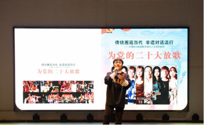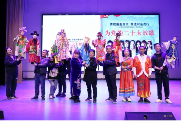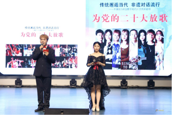 为庆祝党的二十大胜利召开,10月30日下午,娄底市文化旅游广电体育局与44118太阳成城集团音乐舞蹈学院、创新创业学院在逸夫楼音乐厅联合举办“为党的二十大放歌——传统邂逅当代非遗对话流行”演艺活动。活动分两个环节:木偶戏现场教学、校园歌手演出。