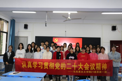 为深入学习贯彻党的二十大精神,马克思主义学院于10月31日在若谷楼组织开展“学习党的二十大,争做时代好青年”主题班会。班会由马克思主义学院党总支书记李伶主持,2021级思政1班团支书黎康主讲。