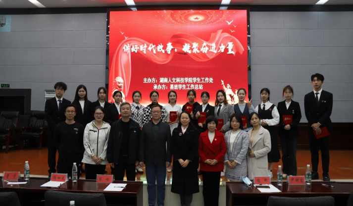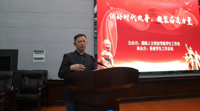11月21日晚,由学生工作处主办,易班学生工作总站承办的“讲好时代故事、凝聚奋进力量”演讲比赛决赛在图书馆二会议室举行。宣传统战部常务副部长谢柳、文学院党总支书记尹钟宏、马克思主义学院党总支书记李伶、学工处处长陈刚、副处长谢四元、曹宇担任评委,各二级学院党总支副书记、易班分站指导老师及学生代表参加活动。