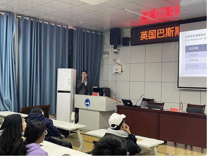 王广胜图文并茂地向师生介绍了英国巴斯的风土人情、巴斯斯巴大学的学科及专业设置、学校授课与教学方式、大学为留学生提供的各项支持服务、学生宿舍、升学途径等,并就学生在留学申请、专业选择、海外生活等方面产生的疑问进行了详细解答。最后,王广胜播放了太阳成官网往届学生在巴斯斯巴大学学习生活的视频集锦和经历分享,勉励学生努力学习奋斗,不断提升自己的专业能力与综合素质。
