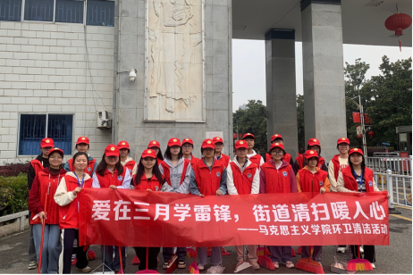 马克思主义学院始终坚持德才并育,以劳动教育实践育人,贯彻雷锋精神,引导马院学子成为新时代雷锋精神的传承者与践行者。此次街道清扫以让同学们亲身实践的方式深入感受和传承了雷锋精神,推进在马克思主义学院形成人人学雷锋、人人做雷锋的生动局面,让雷锋精神在新时代绽放新光芒。(供稿:陈莎 蒋静雯 一审:沈冰莹;二审:周浩;三审:李伶)