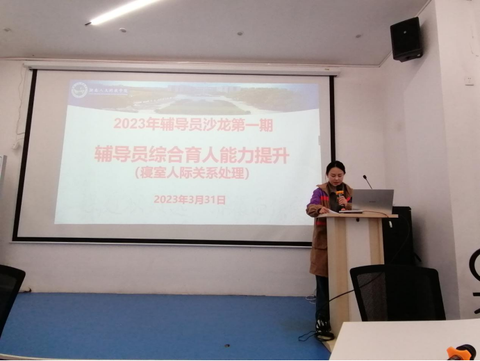 本期沙龙主题为辅导员综合育人能力提升之宿舍人际关系处理。美术与设计学院姚婧、信息学院王觉两位辅导员就本人工作期间的相关案例与辅导员们进行了分享交流。随后,聚集宿舍人际关系问题的处理,辅导员展开了热烈的分组研讨,各组推举代表介绍了本组研讨的案例情况、育人过程与成效、经验总结与启示等。