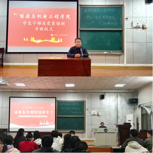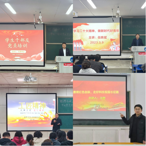 为深入贯彻学习党的二十大精神,凝聚青年学生奋进力量,进一步发挥党员先锋模范作用,发扬学生干部争先创优精神,确保党的二十大精神在青年学生中生根开花,以点带面激发全体学生学习热情,3月份能源与机电工程学院以落实“一月一课一片一实践”为契机,班子成员率先垂范,立足育人特色讲党课,优秀教师党员乘势而为,促进党课和教育教学的深度融合,开展“贯彻党的二十大,奋进新征程”学生党员及干部系列培训。