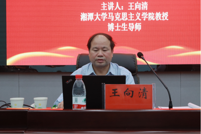 4月17日下午,湘潭大学王向清教授在图书馆第二会议室为第五期青年马克思主义者培养工程骨干培训班讲授“我国农村地区孝道现状与振兴对策”主题讲座。培训班班主任周浩以及第五期青年马克思主义者骨干培训班全体成员参加。马克思主义学院院长张卫明教授主持。