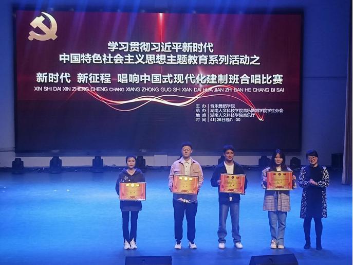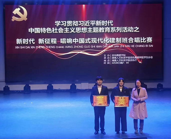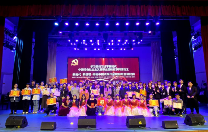 4月26日晚,由音乐舞蹈学院党总支主办,音乐舞蹈学院学生分会承办的学习贯彻习近平新时代中国特色社会主义思想主题教育系列活动之“新时代新征程唱响中国式现代化”建制班合唱比赛在逸夫楼音乐厅举办,以红色歌声唱响主题教育主旋律。宣传统战部常务副部长谢柳,学工处处长陈刚,校团委副书记刘佳,学院党总支副书记邓莉立,副院长刘利连,音乐学专业各教研室主任及全体辅导员、班主任参加。