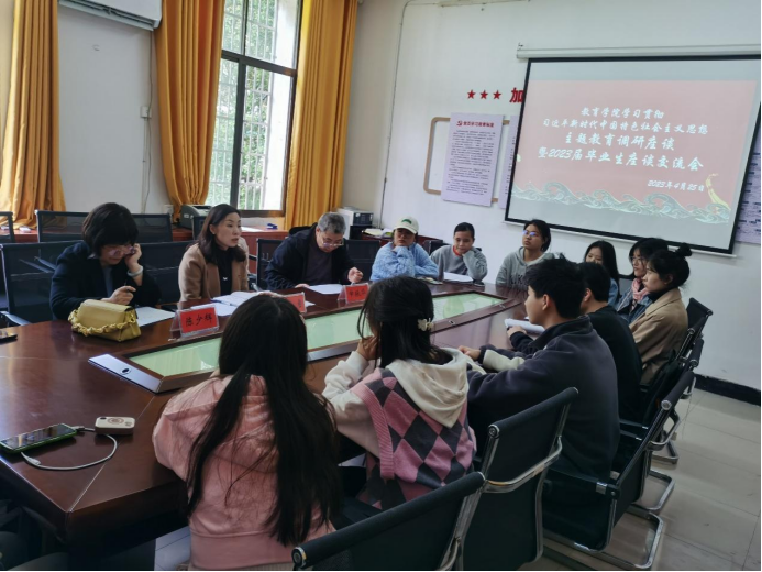 4月25日下午,教育学院组织召开了学习贯彻习近平新时代中国特色社会主义思想主题教育调研座谈暨2023届毕业生交流会。会议按照专业分组进行,党总支书记邹坤、院长刘超良、副书记田密分别主持分组座谈交流。副院长曹俊军、刘黎明,教研室主任,毕业班班主任,辅导员,在校毕业生代表100余人参加。