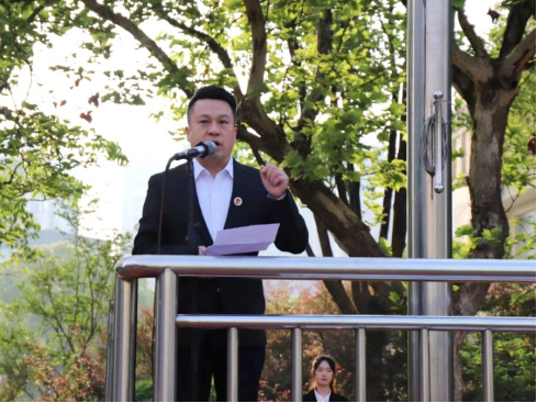 随后,院团总支书记戴建利带领全院团员重温入团誓词,号召全体青年团员听党话、跟党走,奋进新征程。学生代表杨钰平进行国旗下的演讲,倡导大家博学笃志,拼搏奋斗,砥砺前行,扛起属于青年大学生的时代责任与担当,为实现中华民族伟大复兴的“中国梦”而不懈努力。