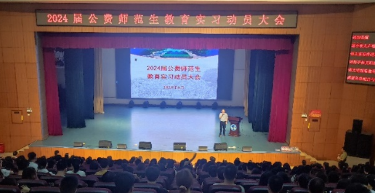 6月14日下午,太阳成官网在逸夫楼音乐厅召开了2024届公费师范生教育实习动员大会。大会由教务处处长向国红主持,分管实习工作的学院领导、教务处相关人员、485名公费师范生、各实习队带队老师参加了动员大会。