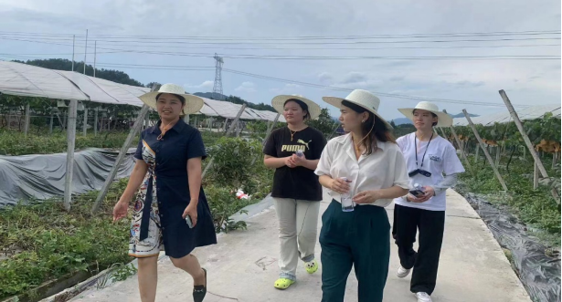 在村委会的带领下,服务队来到该村的特色农业发展基地 ——星鑫农业,负责人王总热情地邀请大家参观集阳光玫瑰、巨峰葡萄、草莓、蓝莓、西瓜、黄桃等为主体的三百亩“四季果园”。她指出,农业是发展的基础,随着科技的进步,数字化农业的趋势势不可挡。未来,他们将持续探索新形态农业发展模式,以数字化农业发展助推乡村振兴,打造农业与旅游业融合发展的产业园区。
