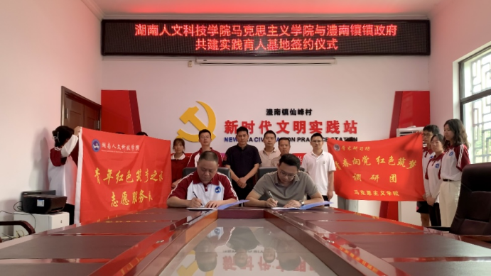 为进一步加强校镇合作交流、共促乡村振兴,马克思主义学院与常德市澧县澧南镇共建“乡村振兴”实践教育基地。张卫明与澧南镇镇长张杰正式签署意向书并举行揭牌仪式。调研团紧扣调研主题,依托澧南镇现有资源及其产业体系,秉持校地合作、共同发展的原则,在毕业实习、创业教育、就业指导、志愿服务、联合举办乡村大讲堂等方面达成合作共识。此次实践教育基地的构建,大大加深了院校与地方政府的交流,能够有效推进“以数字乡村建设赋能乡村振兴”的工作开展,是实现双方“携手共助乡村振兴”美好愿景路上的重要里程碑。