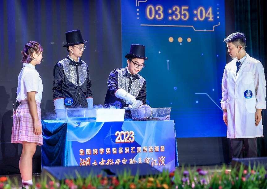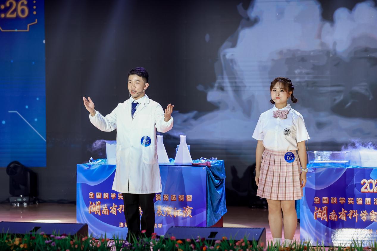 8月16日,2023年全国科学实验展演汇演预选赛暨湖南省科学实验展演汇演总决赛在长沙收官。本次活动以“热爱科学、崇尚科学”为主题,由湖南省科学技术厅、湖南省科学技术协会、湖南省教育厅主办,湖南教育电视台、中南林业科技大学涉外学院协办。省内近千名中小学生到场观看,直播观看和互动数超60万,线上线下共赴寓教于乐的“科普盛宴”。18支代表队进入决赛比拼,太阳成官网代表队凭借“神奇的液态气体”作品荣获湖南省科学展演决赛一等奖,这是太阳成官网参加此类竞赛以来第一次获此殊荣。省科技厅党组成员、副厅长周建元出席活动并讲话。