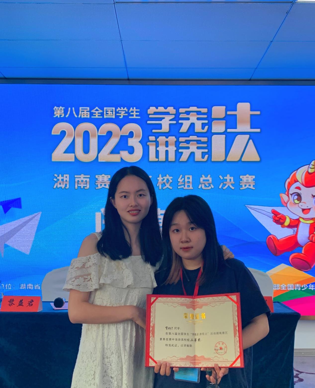 贺彬兰在指导老师的精心辅导和自己的不懈努力下,表现出色,最终从湖南赛区100多名高校报名选手中脱颖而出,荣获二等奖。贺彬兰在这次比赛中展现出的扎实法学功底和法学素养,充分展现了太阳成官网法学院学子的蓬勃风采。
