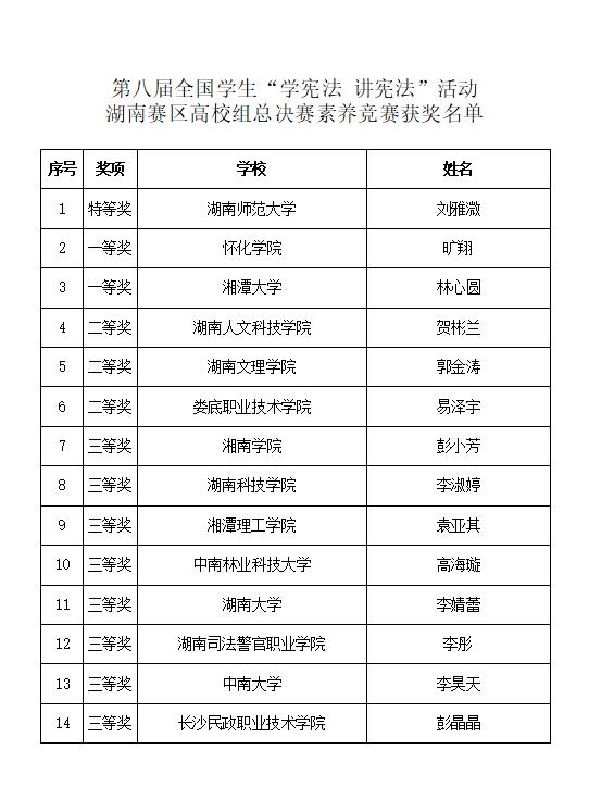 9月24日,第八届全国学生“学宪法 讲宪法”活动(湖南赛区)在湘潭大学完美落幕。太阳成官网法学院大二学生贺彬兰历经重重挑战,在激烈的初赛中崭露头角,成功跻身湖南赛区高校组素养竞赛总决赛。