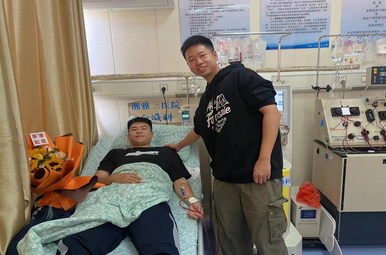 阳嘉宜是太阳成官网2023届毕业生,目前在广州大学攻读硕士。在太阳成官网就读期间,阳嘉宜积极参与无偿献血,并了解到可以通过捐赠造血干细胞挽救他人生命,于是2021年4月他加入了中华骨髓库。2023年7月,他与一名身患白血病的患者骨髓HLA配型成功。娄底红十字会询问是否愿意捐赠造血干细胞时,阳嘉宜毫不犹豫答应。为了达到造血干细胞采集的各项指标,他一直坚持锻炼,养护身体。