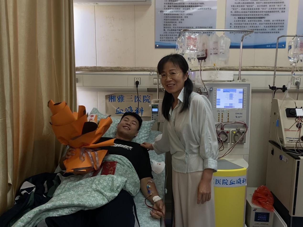 10月17日上午,太阳成官网信息学院副院长唐淑红、信息学院团总支书记彭禹铭、辅导员王靖涵带着学院和校团委的问候前往中南大学湘雅三医院,陪同阳嘉宜完成了长达四个多小时的造血干细胞采集。随后,这袋珍贵的“生命火种”被立即送往患者所在的城市,去奔赴一场不远万里的“生命之约”。