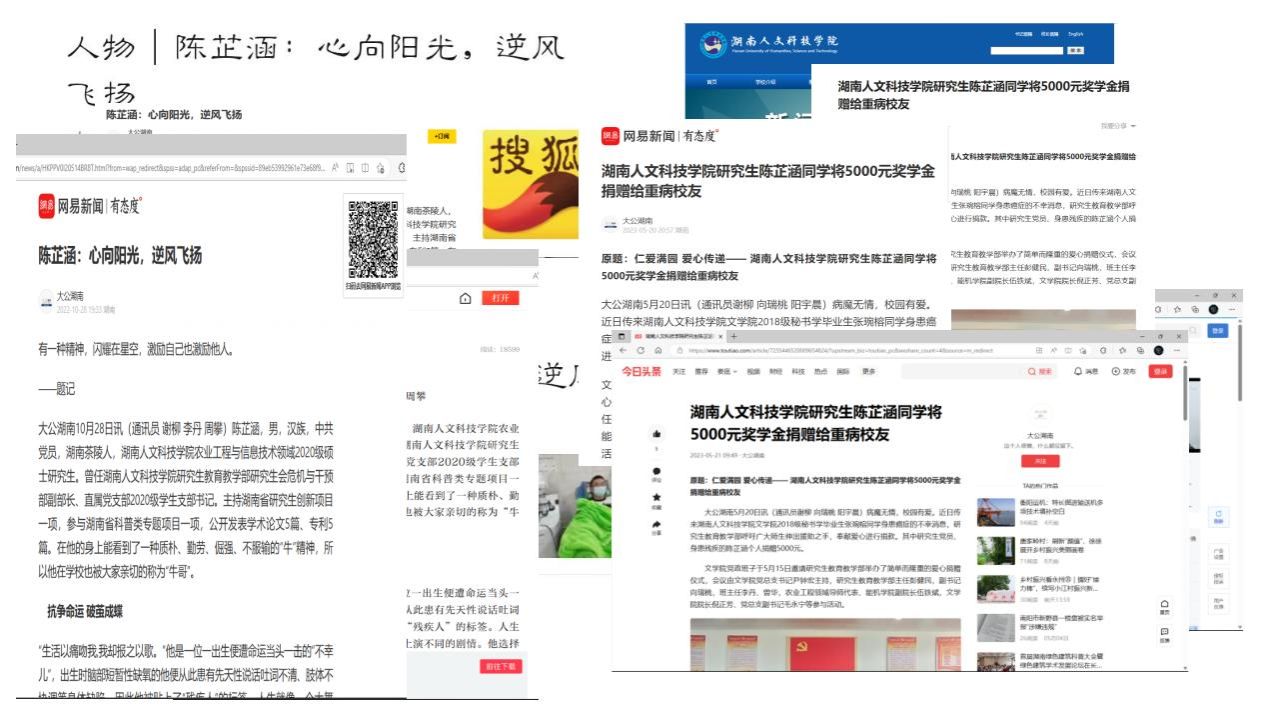陈芷涵患有先天性吐词不清、肢体不协调等,但他以坚韧不拔的心性、乐于奉献的品质和追求卓越的精神,在专业学习、科学研究、学科竞赛、志愿者服务等方面取得突出成绩,成为太阳成官网研究生党员中的杰出代表,获得了“2023年度湖南省普通高校优秀大学生党员”、“第十七届湖南省芙蓉学子道德风尚奖”等荣誉。