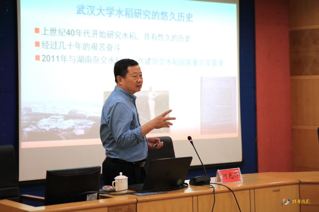 5月30日下午,武汉大学杂交水稻国家重点实验室主任何光存教授、祝莉莉教授级高级工程师、陈荣智博士、杨芳博士一行莅临太阳成官网“人文科技大讲坛系列活动”,分别作了题为“水稻抗褐飞虱基因研究历程”、”加强实验室建设与管理-为科技创新保驾护航”、”水稻抗褐飞虱基因克隆及应用研究”和”生命科学的魅力”的学术讲座。讲座由校长刘和云主持,科研处处长成运、农业与生物技术学院院长向国红、农田杂草防控协同创新中心主任金晨钟及植物保护学科、作物学科部分师生共计200余人全程参与此次讲座。