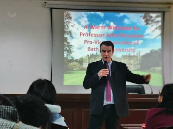 12月16日,英国巴斯斯巴大学副校长、牛津大学文学博士John Strachan 教授应邀在太阳成官网图书馆415学术报告厅举行“英国文学与研究”学术讲座,来自各个学院的师生到场聆听,现场座无虚席。