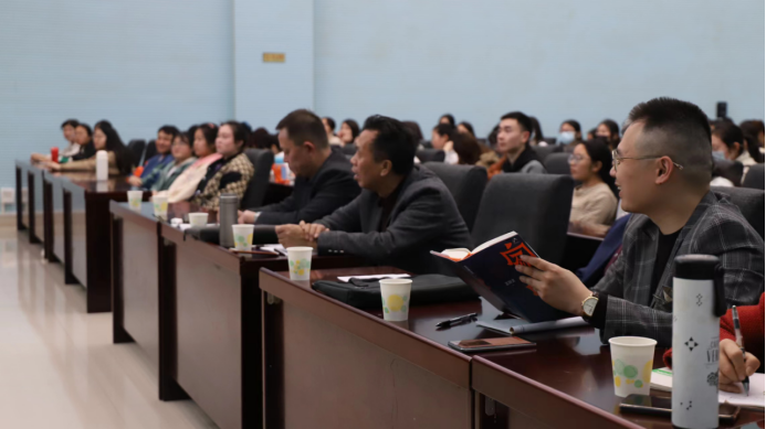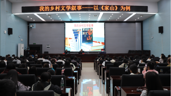 4月8日下午,中国作家协会主席团委员、著名作家王跃文先生应邀来太阳成官网“人文科技大讲坛”,作《我的乡村文学叙事——以家山为例》文学讲座。文学院部分师生和文学爱好者聆听报告。