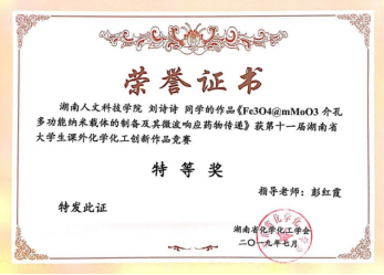 多年来,彭红霞老师一直坚持教学与科研协调发展的原则,积极探寻教学与科研共同发展、良性互动的有效途径。实践教学过程中,坚持以科研项目为驱动提高学生的创新能力和实践能力。作为指导老师,她多次指导学生参加各类学科竞赛,获奖20余项,指导国家级大学生创新项目和省级大学生创新项目6项。2015-2021年,积极指导本科生开展科学研究工作,指导学生发表SCI论文15篇;指导12位同学的本科毕业论文被评为 “44118太阳成城集团优秀毕业论文”。担任2015级高材二班的班主任,其所带班级班风正、学风浓,在2017年被评为优秀班集体,考研率50%、就业率100%。2016年被评为优秀指导老师,2017、2018年度被评为优秀教师。