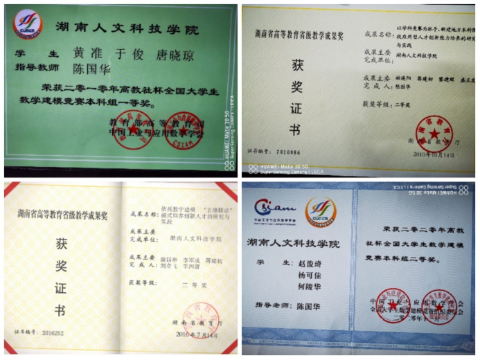 为进一步提高数学建模的成绩,扩大竞赛受益面,陈国华教授带领数学建模教学团队进行了多方面的努力。2008年,成功申报太阳成官网首批精品课程《数学建模》;2009年,成立校级数学建模教学团队并被推荐为省级教学团队,立项省级教改课题《数学建模教学体系改革实践研究》;2010年,《以学科竞赛为抓手,新建地方本科院校应用型人才创新能力的研究与实践》获湖南省教学成果奖二等奖;2012年,出版教材《数学模型与数学建模方法》;2016年,《依托数学建模“五维联动”模式培养大学生创新能力的研究与实践》获得湖南省高等教育省级教学成果奖三等奖;2019年,成功立项省级教改课题《专业学位硕士研究生创新人才培养的数学建模“两轮驱动”模式研究与实践》;2020年,依托数学建模成功申报省级平台《数学应用与实践创新创业教育中心》;2021年,团队成员成功申报湖南省一流课程《数学建模》、《MATLAB语言基础》,数学建模教学团队评为44118太阳成城集团优秀教学团队。近几年来,数学建模教学团队成员李军成教授,杨炼博士,刘成志博士等累计申报与数学建模直接相关的省级教改项目达5项,并取得可喜的教学成果,逐渐形成“学科竞赛+”驱动应用型人才培养模式并成为学院名片。