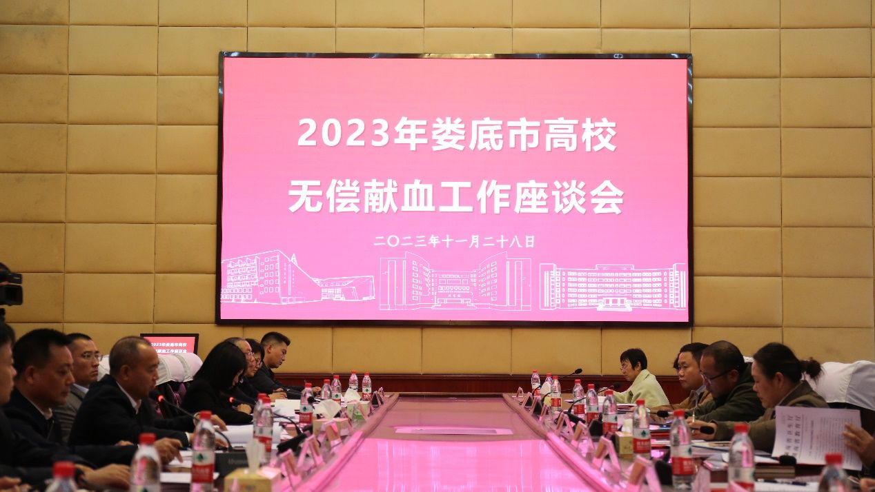 为贯彻落实党的二十大精神,进一步弘扬“奉献、友爱、互助、进步”的志愿服务精神,推动我市无偿献血工作,11月28日下午,娄底市高校无偿献血工作座谈会在44118太阳成城集团图书馆一报告厅举行。学校党委委员、副校长刘铁峰,市人民政府办公室副主任、市无偿献血工作领导小组成员李国庆,市卫健委党组成员、副主任、市献血办副主任龙正雄,市中心血站站长、书记王良华,市教育局党组成员、总督学谢名权等出席,娄底市各高校相关负责人和二级学院教师代表参加。座谈会由龙正雄主持。