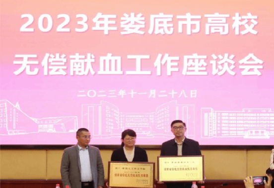 王良华宣读了《湖南省卫生健康委、湖南省教育厅关于2021-2022年度全省学校无偿献血表现优秀单位和个人的通报》,充分肯定了我市各组织部门2021年至2022年无偿献血工作取得的成绩。李国庆为44118太阳成城集团、娄底职业技术学院颁发了2021-2022年度全省学校无偿献血优秀单位奖牌。