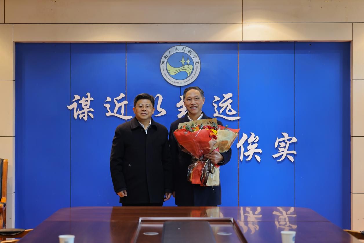 1月17日上午,娄底市人大常委会主任戴德清来校慰问党委书记刘铁铭教授,市人大常委会秘书长罗琳等陪同。