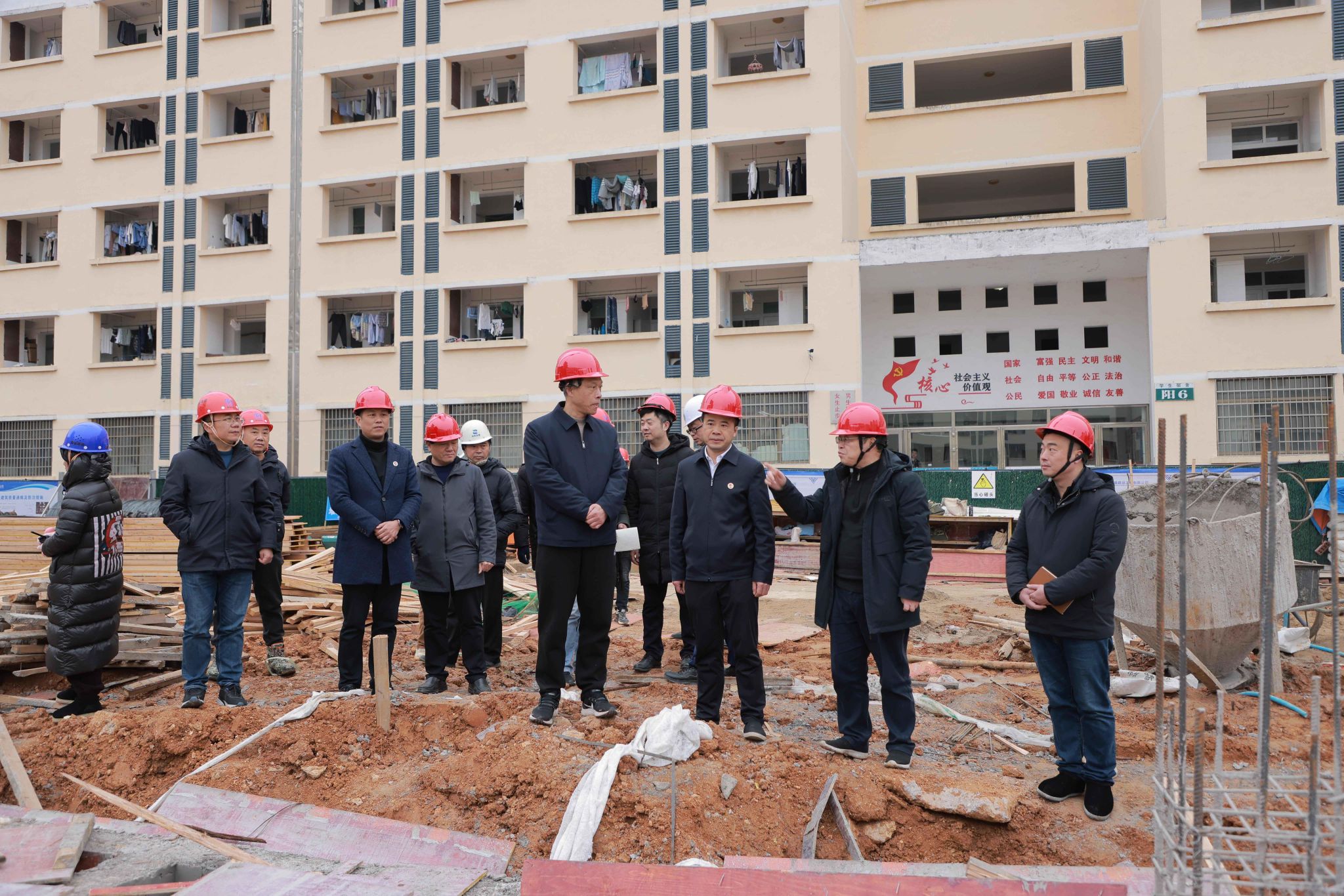 刘铁铭、盛明科一行实地查看教学楼及教学设施设备、学生宿舍、食堂、学校超市、在建工地等,认真听取相关负责人的工作汇报,详细了解基建工程进度、学生宿舍楼修缮、食品和校园安全等情况。在教学楼和宿舍,学生们正在领取新学期的书籍,领导们叮嘱大家迅速调整心态,以崭新的精神面貌投入新的学习。
