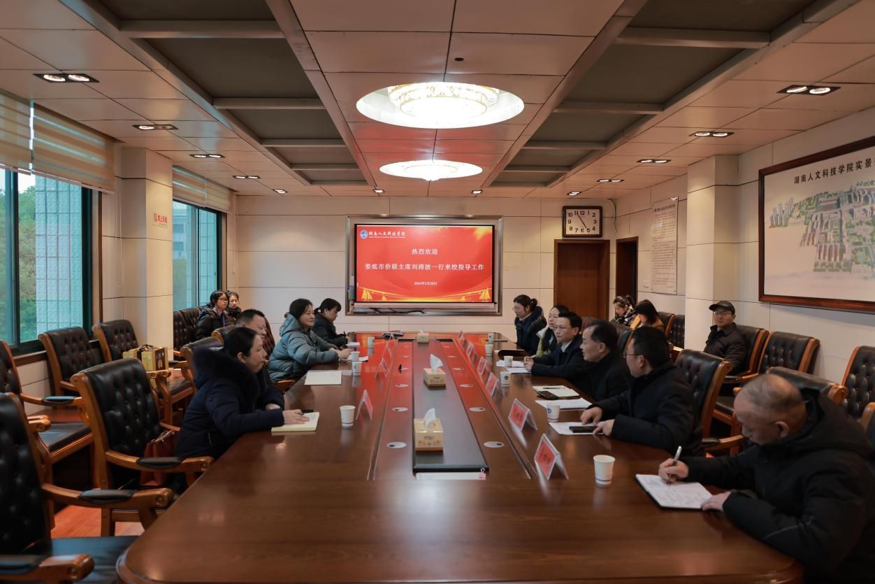 2月28日下午,娄底市侨联主席刘涛波一行来校调研指导侨联工作。党委委员、副校长、校侨联主席陈志国,党委副书记朱强出席会议,宣传统战部、校侨联主要负责人参会。宣传统战部常务副部长谢柳主持。