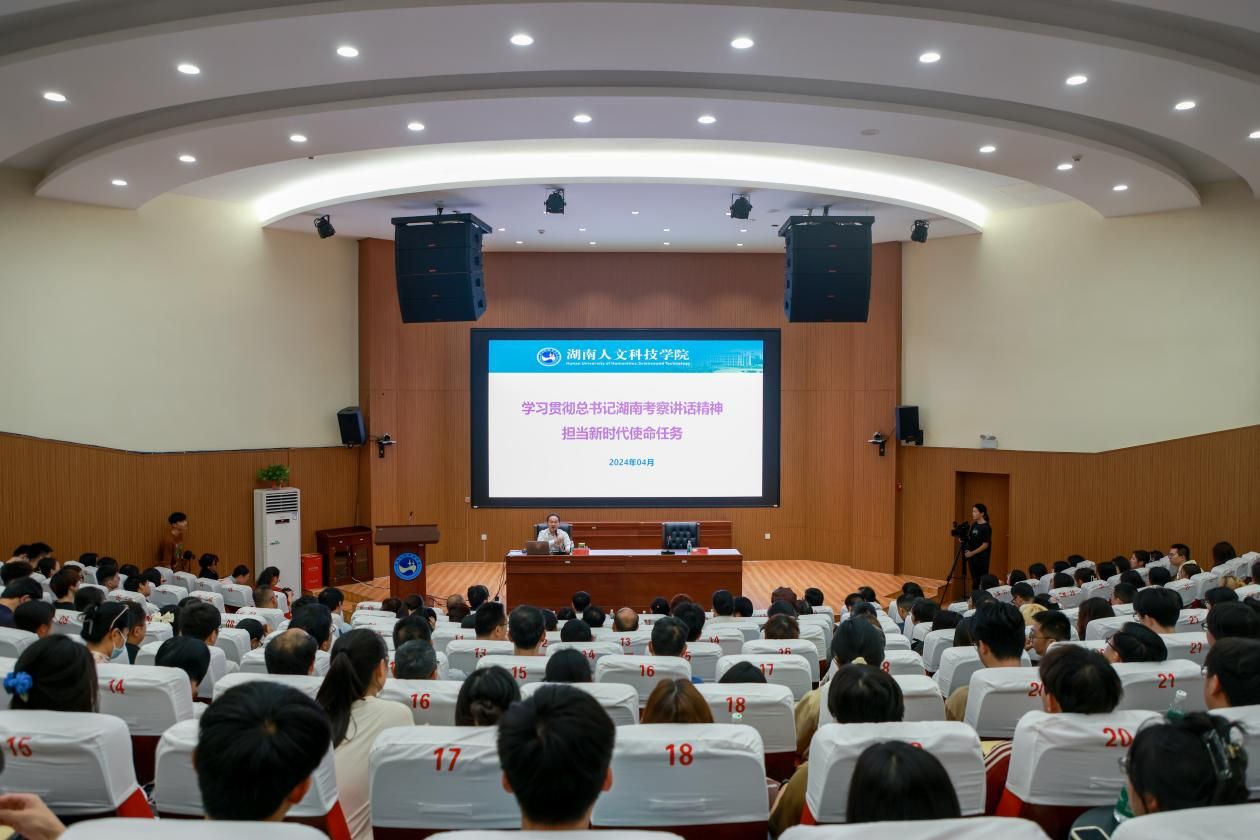 4月2日,党委副书记朱强在匠成楼报告厅讲授“学习贯彻总书记湖南考察讲话精神 担当新时代使命任务”主题党课。学校宣传统战部、统一战线代表及材环院全体老师、学生党员、2022级入党积极分子参加。材料与环境工程学院党总支书记谭峰亮主持。