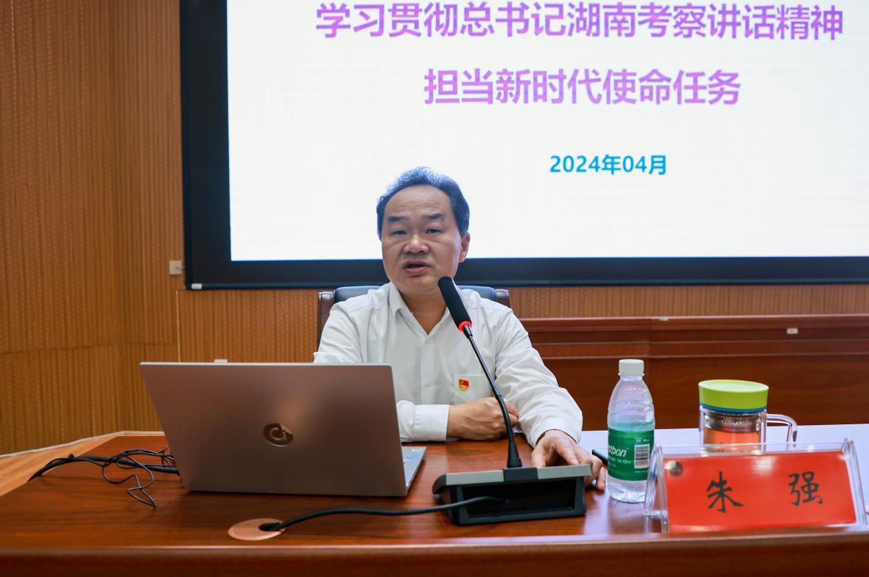 课上,朱强带领大家回顾了习近平总书记十八大以来四次考察湖南的情况,全面分析了习近平总书记为中部崛起指明的方向,剖析了坚持稳中求进工作总基调、坚持高质量发展不动摇、坚持改革创新求真务实的内涵。他鼓励全体师生担当起属于自己的新时代使命任务,结合自身专业特点,积极投身科技创新、社会服务等领域,为推动地方乃至国家经济社会发展做出应有的贡献。朱强还结合自身经历,引导教师“当好大先生”,育好时代新人,同时也希望学生明德知耻,立报国强国之大志,担当中华民族复兴重任。