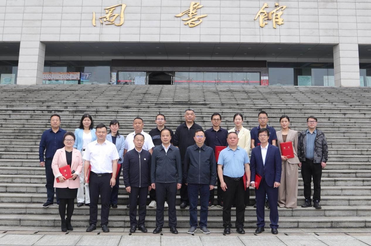 仪式结束后,第五届学术委员会全体委员在学校图书馆前合影留念。(科研与社会服务处供稿;图/唐宇兴)