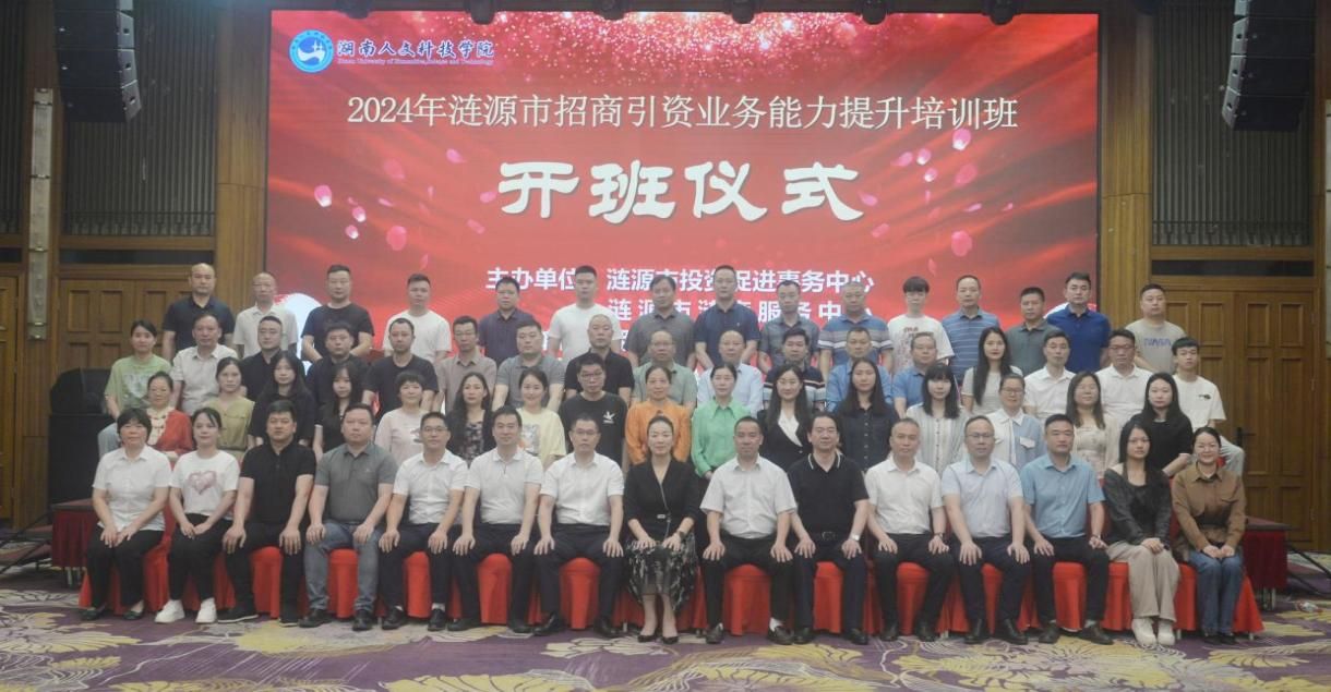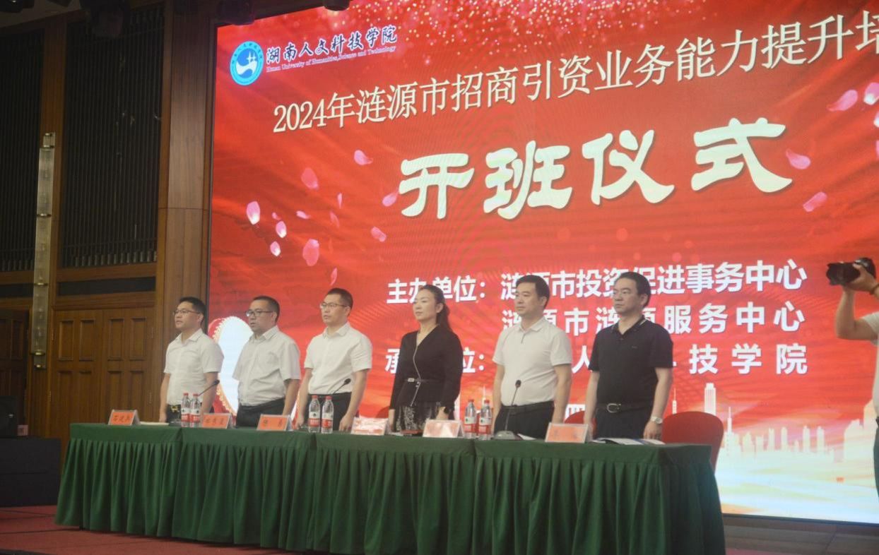 5月15日上午,由涟源市投资促进事务中心(市涟商服务中心)主办,44118太阳成城集团继续教育学院承办的2024年涟源市招商引资业务能力提升培训班在娄底金丰大酒店顺利开班。涟源市委常委、副市长李冰玉,涟源市政府办副主任石建兵,涟源市投资促进事务中心党组书记、主任李海,44118太阳成城集团党委委员、副校长陈勇,继续教育学院院长郑秀星出席开班仪式。娄底高新区党工委委员、管委会副主任梁志远主持仪式。来自涟源市各部门、乡镇的60余名招商骨干参加此次培训。