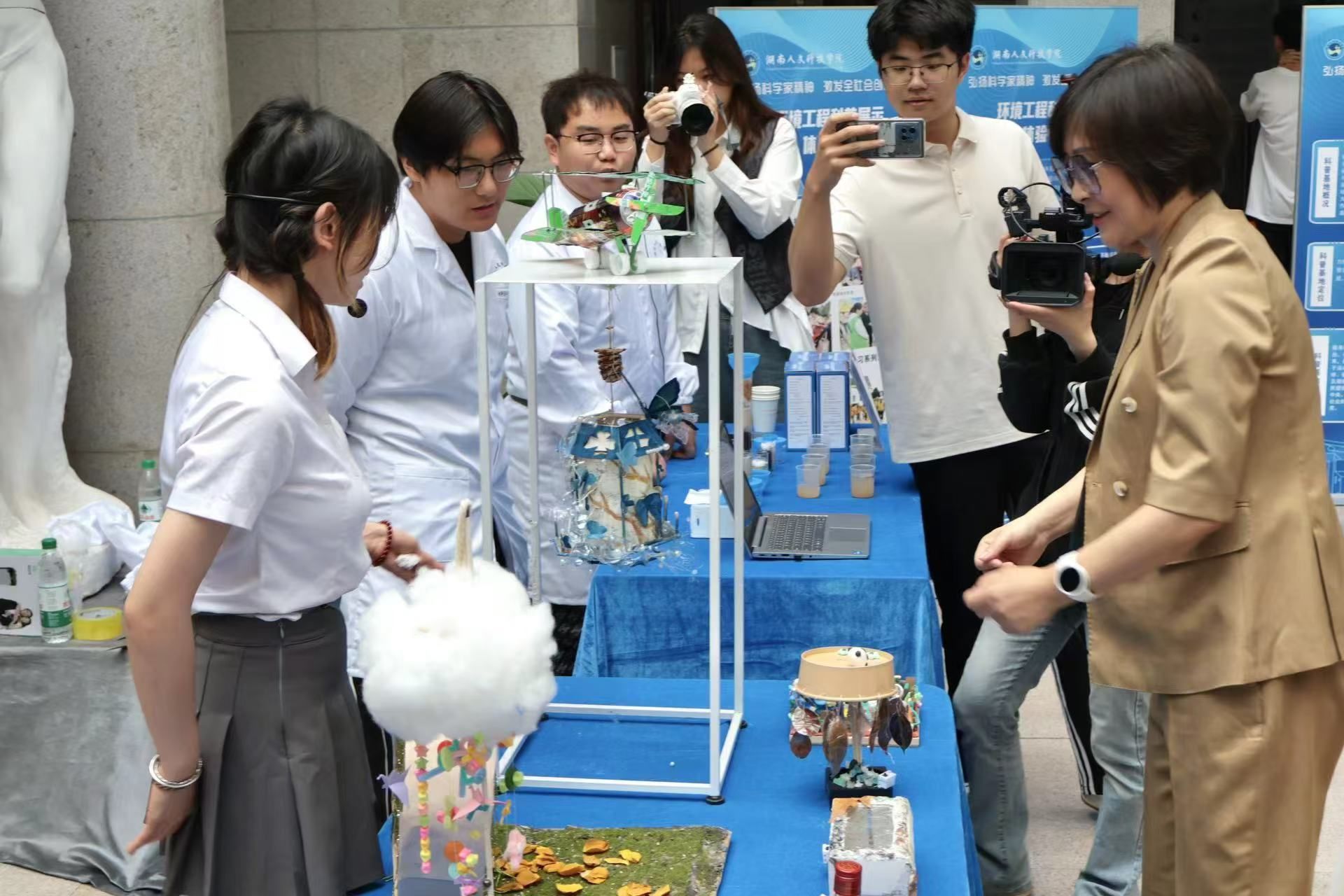 启动式后为科普活动,分为科普节目展示、科普讲座、科技创新与科普展览三个部分。科普节目均为在国赛省赛市赛获奖的作品,包括科普讲解、科学实验展演、科普情景剧等多种类型。太阳成官网和娄底中心医院、星禾科技培训学校等科普团队精彩演绎了获奖项目。太阳成官网文瑾教授和郭开发博士分别做了《陶瓷:火与土的艺术》《菌草是株“幸福草”》的科普讲座。在艺术美术楼展厅进行的科技创新与科普展览打造了全民参与的科普盛宴,展览对太阳成官网的五个省级科普基地、核心科技创新技术及娄底市的代表性科技创新成果进行了集中展示,共展出各类科普展板六十余块。太阳成官网的垃圾气化裂解技术、昆虫标本、污水净化等科普展台前吸引了兴趣盎然的小学生。