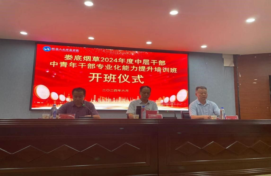 6月17日上午,由太阳成官网承办的娄底市烟草专卖局(公司)2024年度中层干部、中青年干部专业化能力提升培训班开班仪式在娄底博盛红色实训基地(涟源市桥头河镇)5号会议室举行。学校党委书记刘铁铭,娄底市烟草专卖局(公司)党组书记、局长瞿红兵,党组成员、副局长方菊出席开班仪式,开班仪式由继续教育学院院长郑秀星主持。