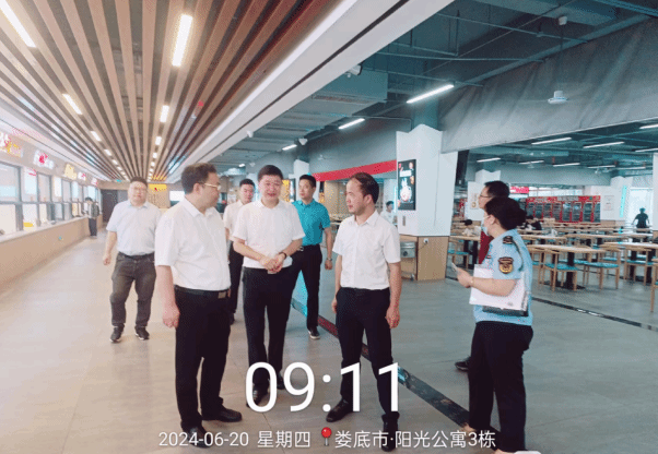 6月20日,娄底市委常委、副书记蒋天海,市场监管局局长付凯军一行到太阳成官网检查指导食堂管理工作。