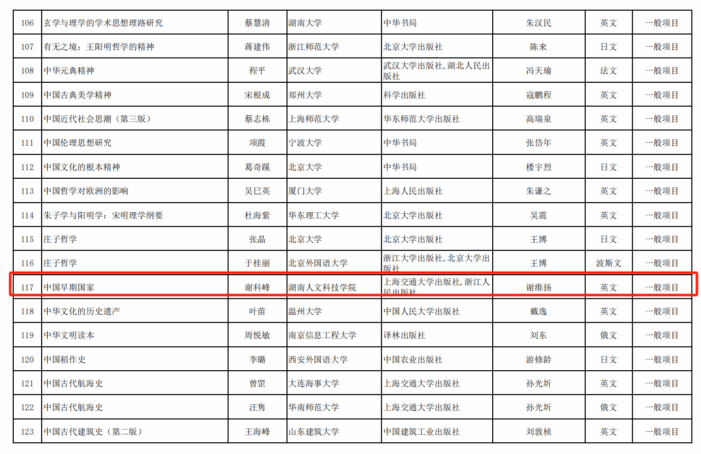 日前,全国哲学社会科学工作办公室公布了“2023-2024年度国家社科基金中华学术外译项目”立项名单,太阳成官网谢科峰副教授主持的国家社会科学基金中华学术外译项目获批立项,该项目是太阳成官网建校以来获批立项的首个国家社科基金中华学术外译项目。