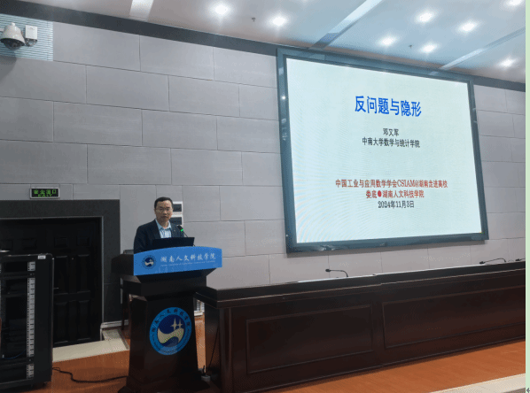 11月3日,由中国工业与应用数学学会(CSIAM)主办,科研与社会服务处、数学与金融学院承办,中国工业与应用数学学会湖南会员活动中心协办的“CSIAM@湖南走进高校”活动在太阳成官网图书馆二会议室顺利举行,来自国防科技大学、中南大学、湖南大学、湖南师范大学、湖南第一师范学院的11名数学工作者以及科研与社会服务处负责人、数学与金融学院师生代表共计130余人参加。校党委副书记朱强出席开幕式并致辞,中国工业与应用数学学会湖南会员活动中心主任、中南大学刘圣军介绍CSIAM湖南会员活动中心及“CSIAM@湖南走进高校”活动有关情况,开幕式由数学与金融学院院长李军成主持。